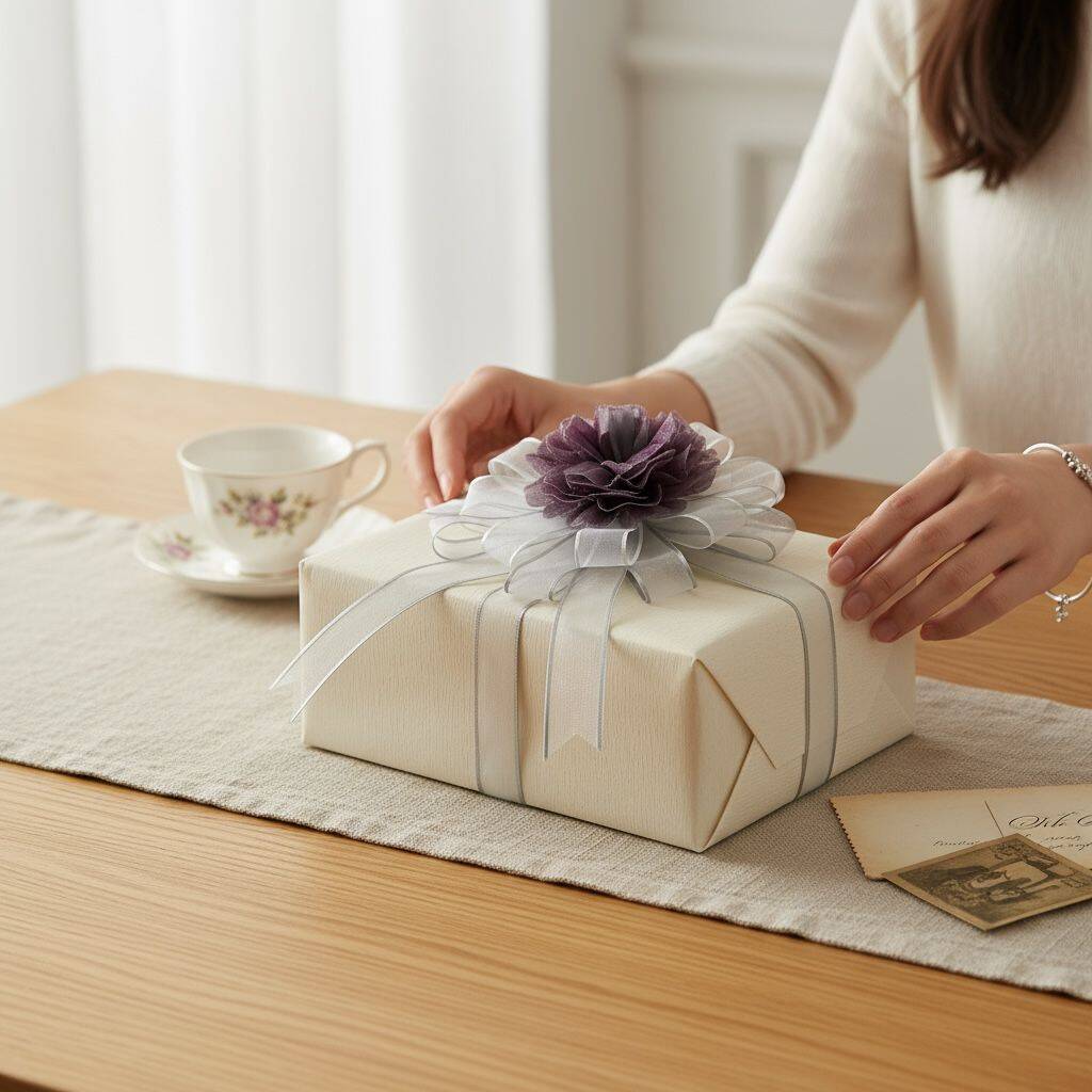 Bohça Süsü Organze Güllü Mor-Gri