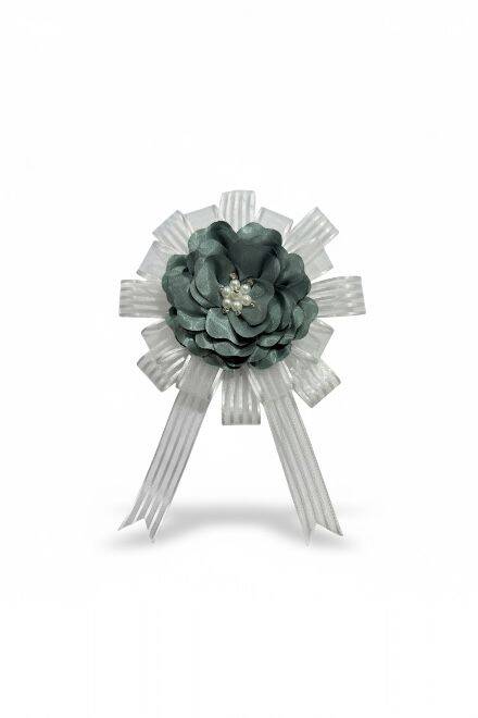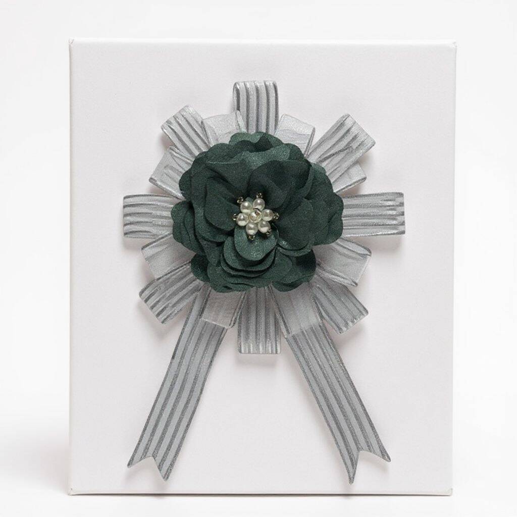 Bohça Süsü Saten Güllü Beyaz Şerit - Mint Yeşili Çiçek