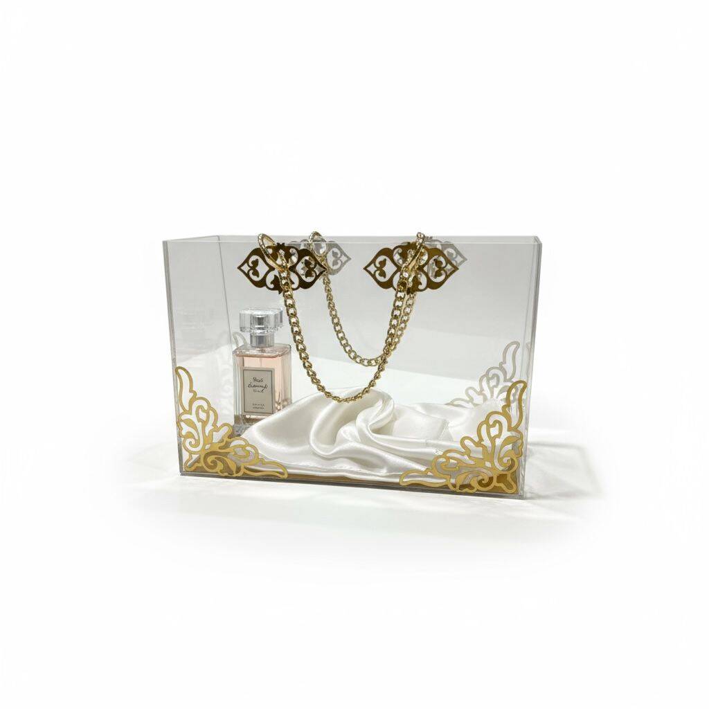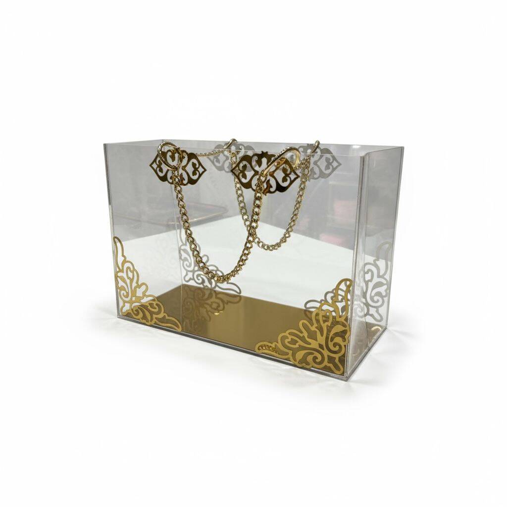 Şeffaf Pileksi Çanta Zincir Detaylı Gold Süslemeli